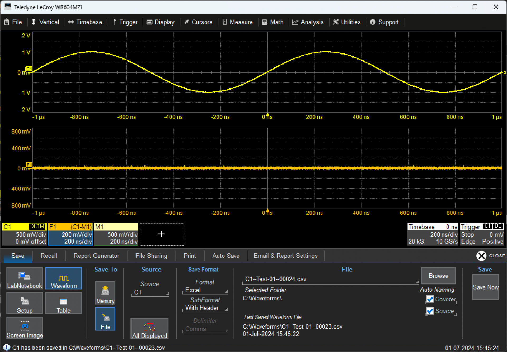 Tameq hat eine Konvertierungs-Routine entwickelt, die das Format Excel With Header einliest und in das LeCroy Binary Waveform-Format zurück-konvertieren kann.