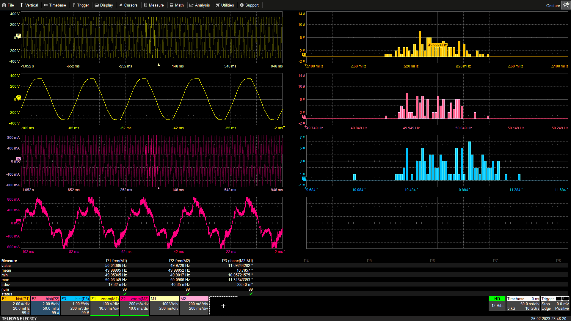 Eine mögliche Darstellung und Auswertung von Spannung und Strom im Sequence Mode mit der grafischen Darstellung in der Form von Histogrammen: