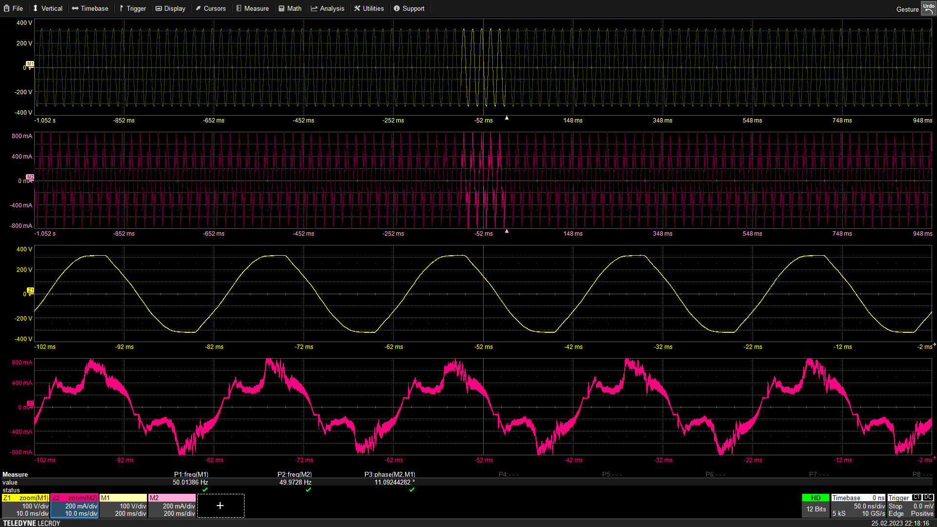 Die gewünschten Signale werden mit dem WaveSurfer Oszilloskop erfasst.