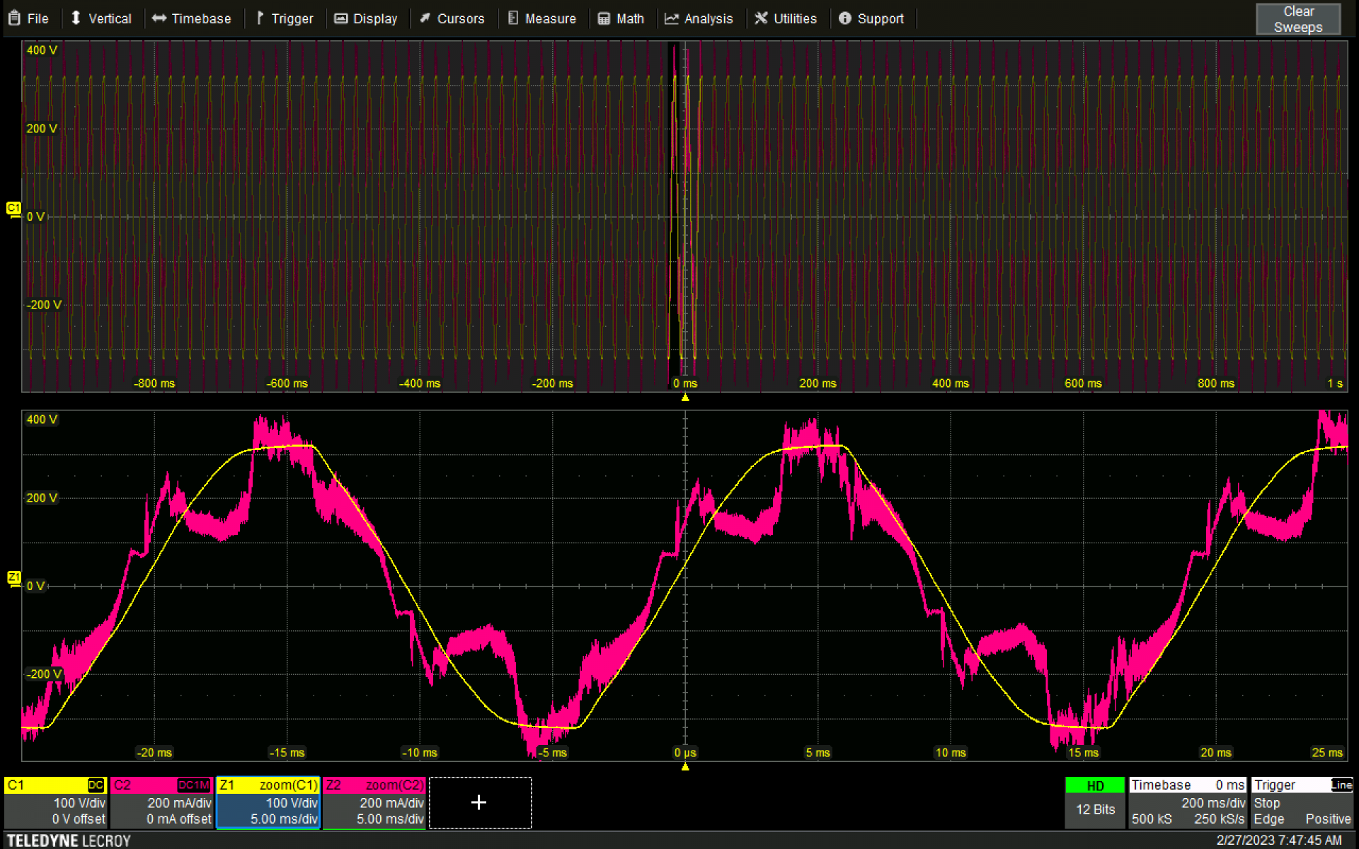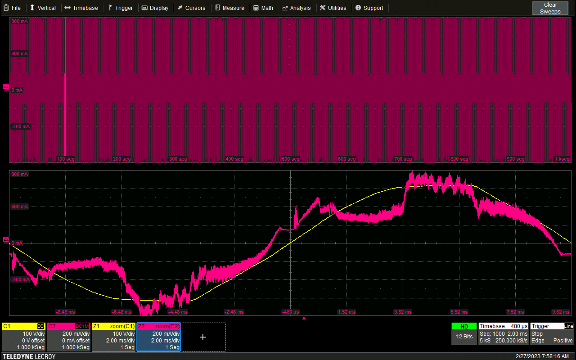 Die gewünschten Signale werden mit dem WaveSurfer Oszilloskop im Sequence Mode mit 1000 Segmenten erfasst.